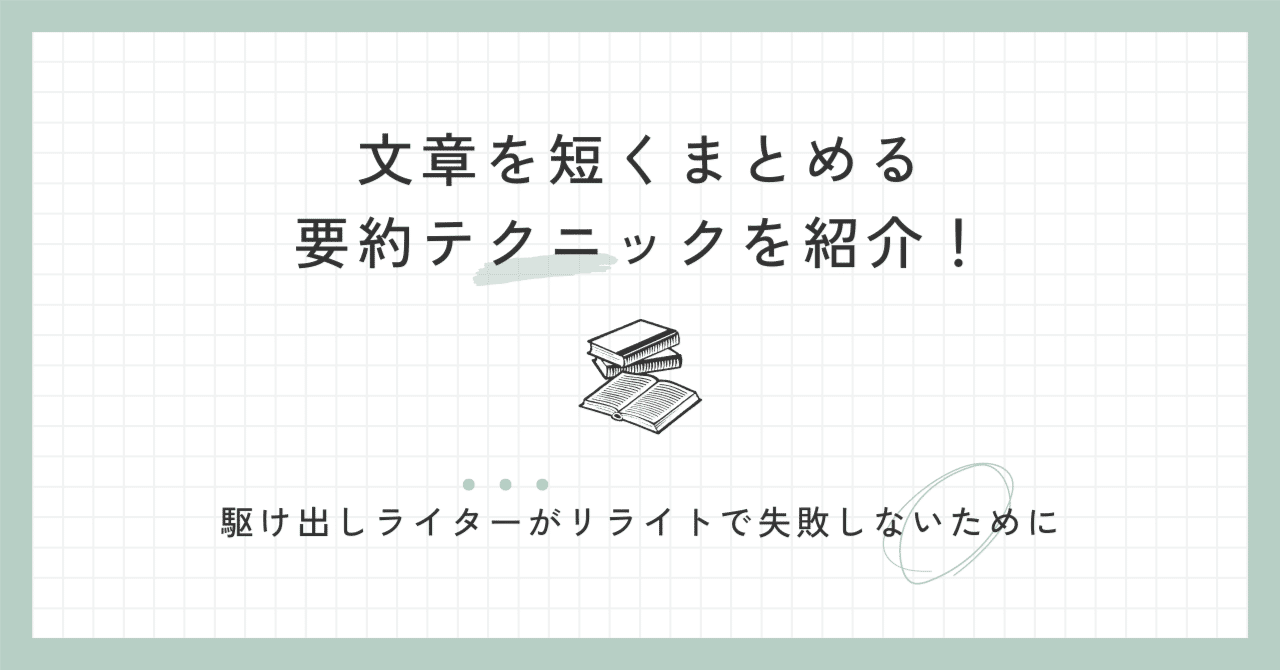 文章を短くまとめる要約テクニックを紹介! 駆け出しライターがリライトで失敗しないために|みみずく|家庭教師&ライター